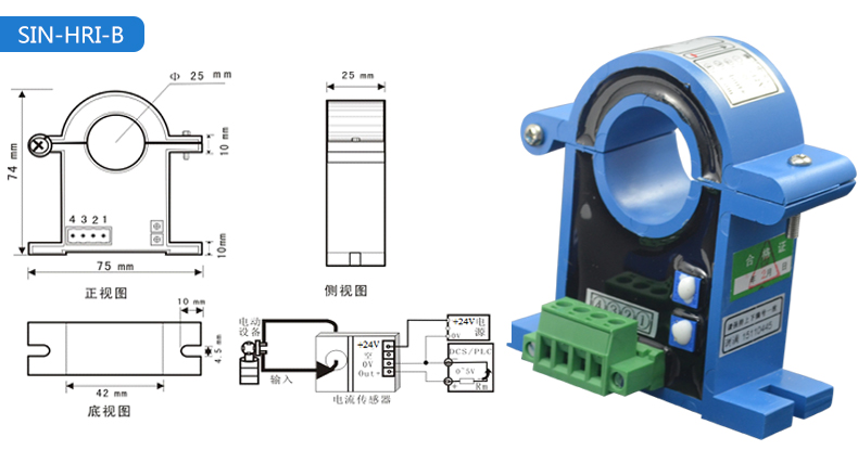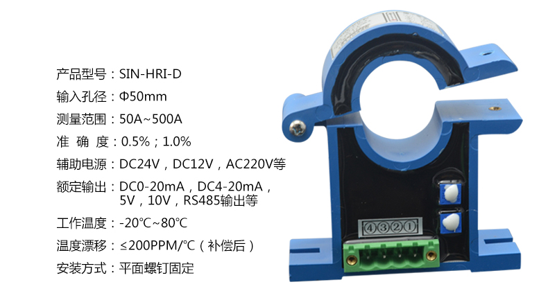 電流變送器可以直接將被測主回路交流電流或者直流電流轉換成按線性比例輸出的DC4~20mA(通過250Ω 電阻轉換DC 1~5V或通過500Ω電阻