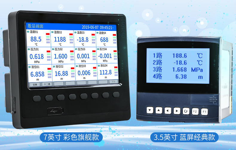無紙記錄儀是將采集的數(shù)據(jù)/運算數(shù)據(jù)以時間為基軸記錄在儀器內部的存儲系統(tǒng)中,無消耗任何常用的記錄設施,如:紙張、筆墨。記錄在儀器內部的存儲數(shù)據(jù),通過運算、模擬后顯示在液晶屏。常用顯示用液晶屏比較廣泛。在液晶屏屏幕上,可以顯示數(shù)字顯示、棒圖顯示、曲線顯示、報警列表等。無紙記錄儀采集的數(shù)據(jù),常用的有:溫度、壓力、流量、液位、電壓、電流、濕度、頻率、振動、轉速等。
