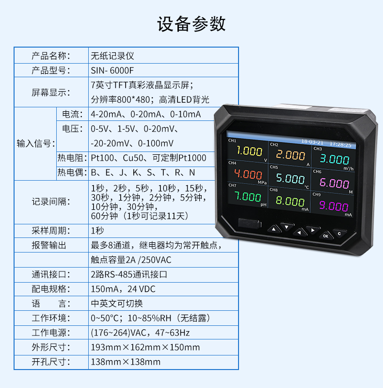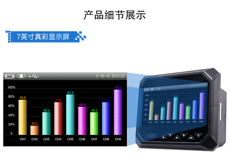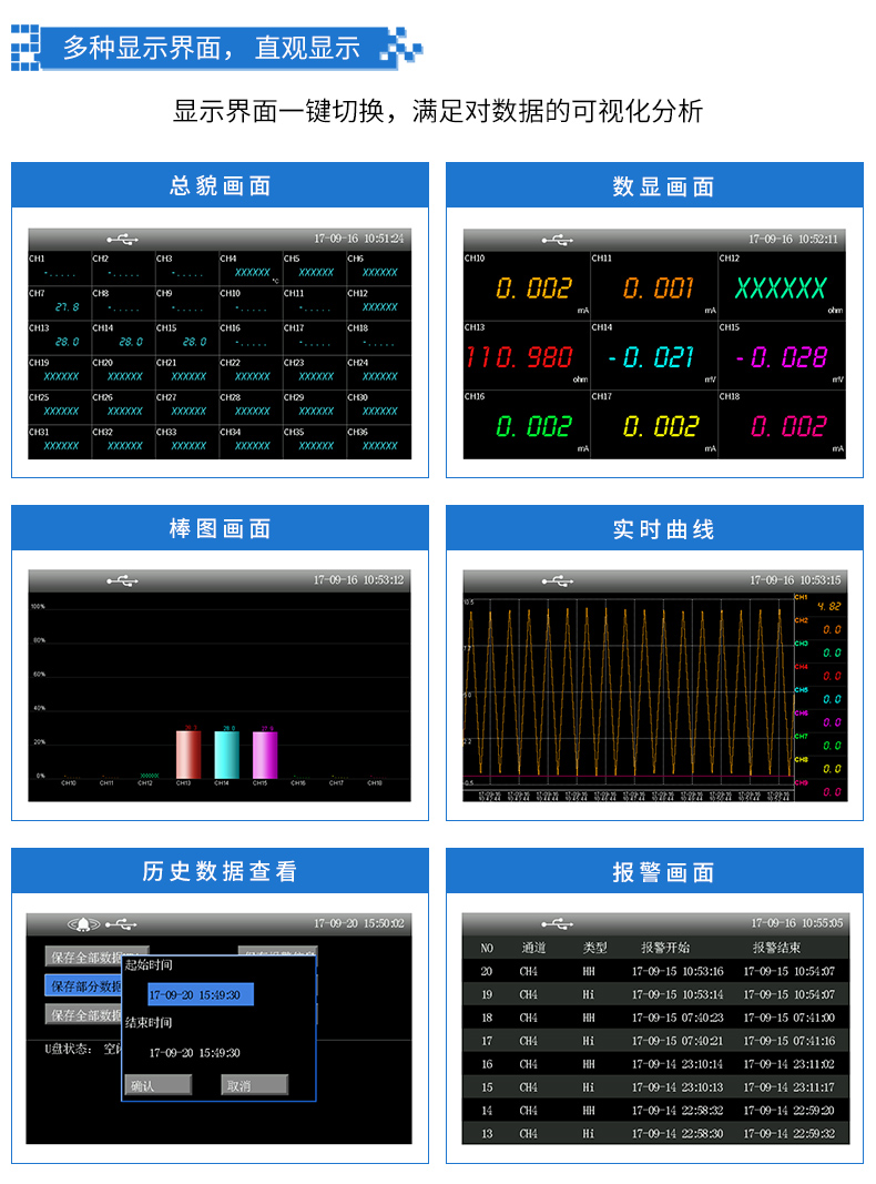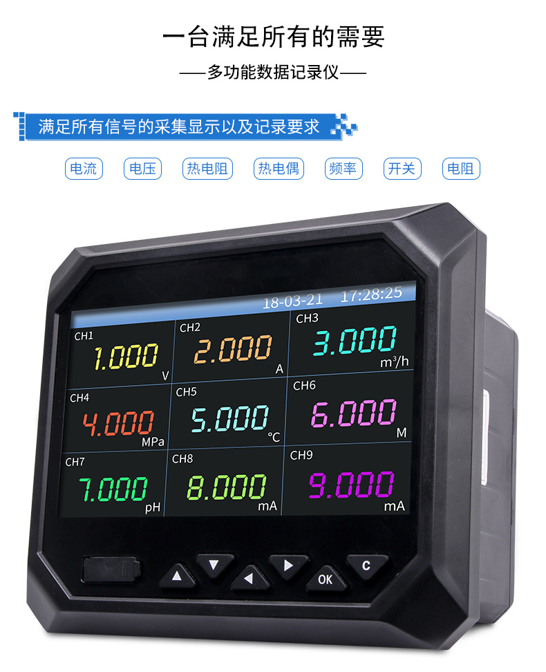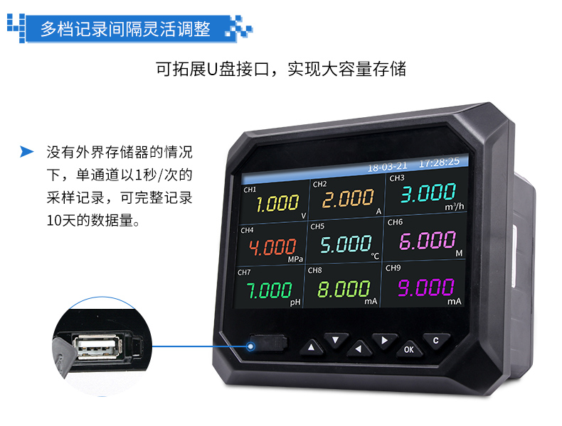 無紙記錄儀是將采集的數(shù)據(jù)/運(yùn)算數(shù)據(jù)以時(shí)間為基軸記錄在儀器內(nèi)部的存儲(chǔ)系統(tǒng)中,無消耗任何常用的記錄設(shè)施,如:紙張、筆墨。記錄在儀器內(nèi)部的存儲(chǔ)數(shù)據(jù),通過運(yùn)算、模擬后顯示在液晶屏。常用顯示用液晶屏比較廣泛。在液晶屏屏幕上,可以顯示數(shù)字顯示、棒圖顯示、曲線顯示、報(bào)警列表等。無紙記錄儀采集的數(shù)據(jù),常用的有:溫度、壓力、流量、液位、電壓、電流、濕度、頻率、振動(dòng)、轉(zhuǎn)速等。